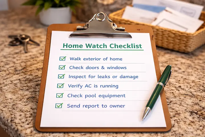 Scope of WorkWhat items get checked each visit?Exterior Property CheckPool Area CheckInterior CheckUtility & Safety CheckFinal Visit and Concierge Services